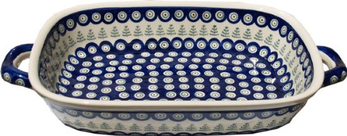 Polish Pottery Baking Dish with Handles From Zaklady Ceramiczne Boleslawiec #1345-312 Classic Pattern, Depth: 2.5" Width: 11" Length: 14.5" (18" with Handles), hopefully can help you in buying the product.
